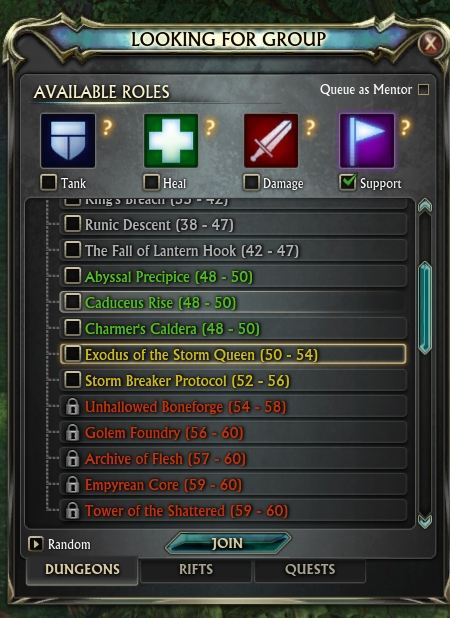 I had been peering at the LFG screen wondering why queueing up for Expert dungeons kept tossing me into the old world dungeons. It totally slipped my mind that the NEW dungeons are part of the Normal leveling system, as we’re back to getting normal XP and relying on dungeon drops to advance. I know I’ve looked at this before, but apparently, when you scroll down just a tiny bit, voila! There’s all those Storm Legion dungeons that I need to be doing.
